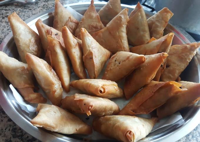 - Afterwards take samosas strips fill the mixture roll in samosas shape and deep fry in oil...